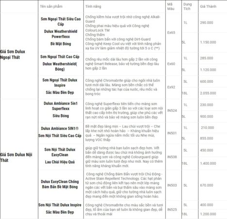 Cập nhật bảng giá, bảng màu sơn dulux, nguồn gốc xuất sứ sơn dulux….
